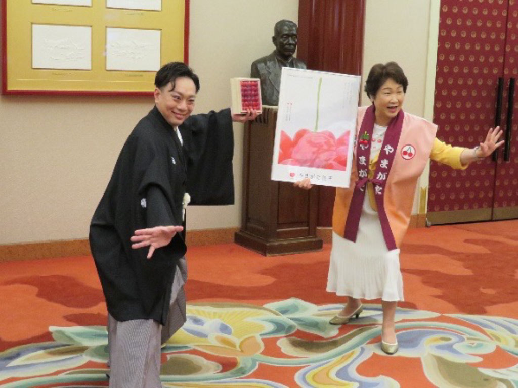 さくらんぼの超大玉新品種「やまがた紅王🍒」のプレデビューを記念し、首都圏におけるブランド確立に向けた認知度向上をはかるため、7月1日に歌舞伎座を会場に首都圏のマスコミを対象とした「やまがた紅王」のお披露目を行ないました。
