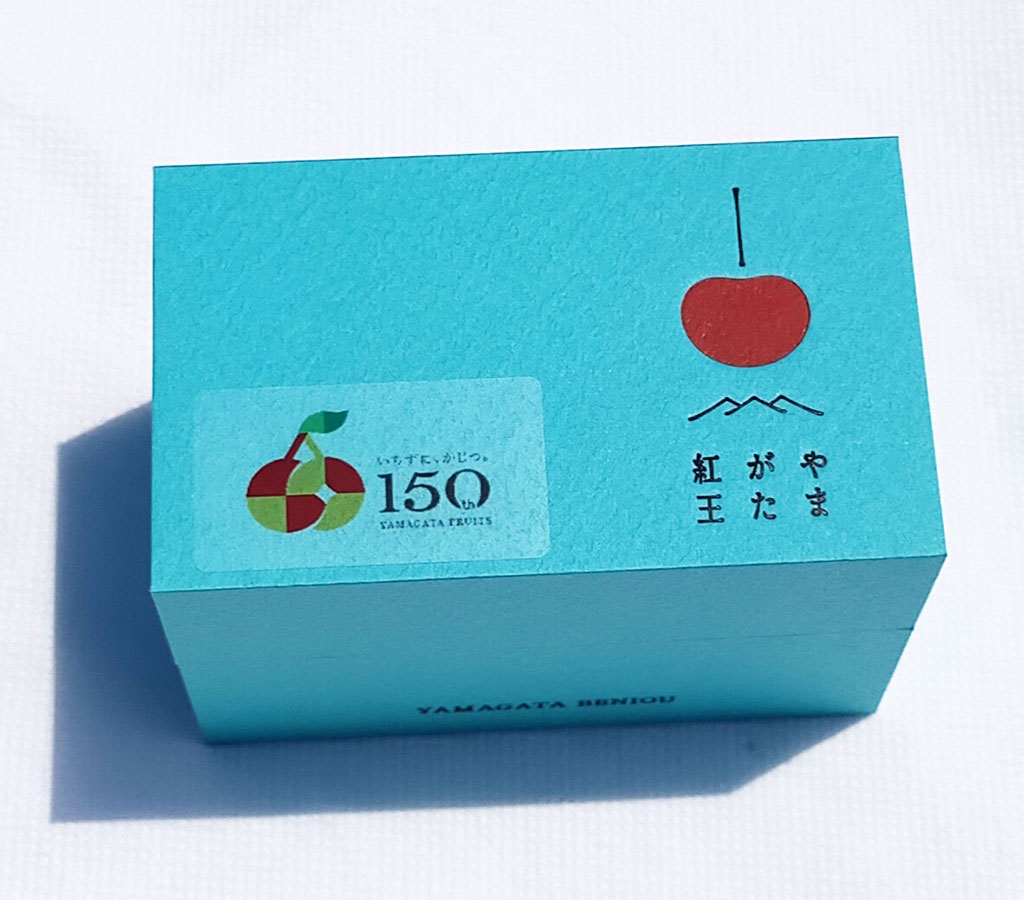 「やまがたフルーツ150周年事業」の一環で、「やまがた紅王 プレミアム」専用の新しいパッケージを作成しました。このパッケージを使って初めて出荷した果実が、6月20日(金)、東京中央卸売市場大田市場において、1箱15万円で取引されました。取引された果実は、5L級(横径34mm以上)の超大玉サイズです。